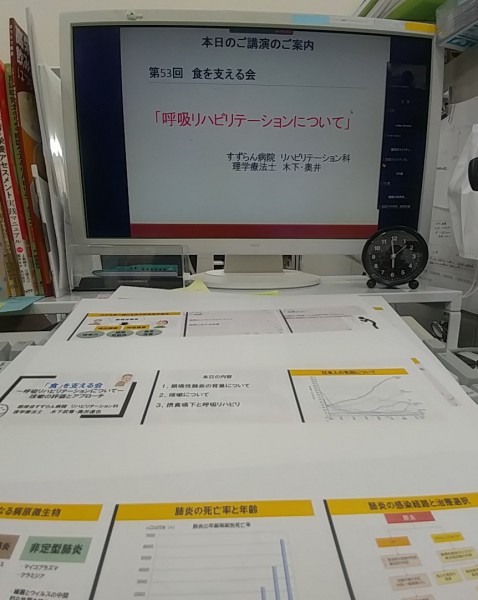 今日は木下先生、奥井先生から「呼吸リハビリについて」特に「咳嗽力」に